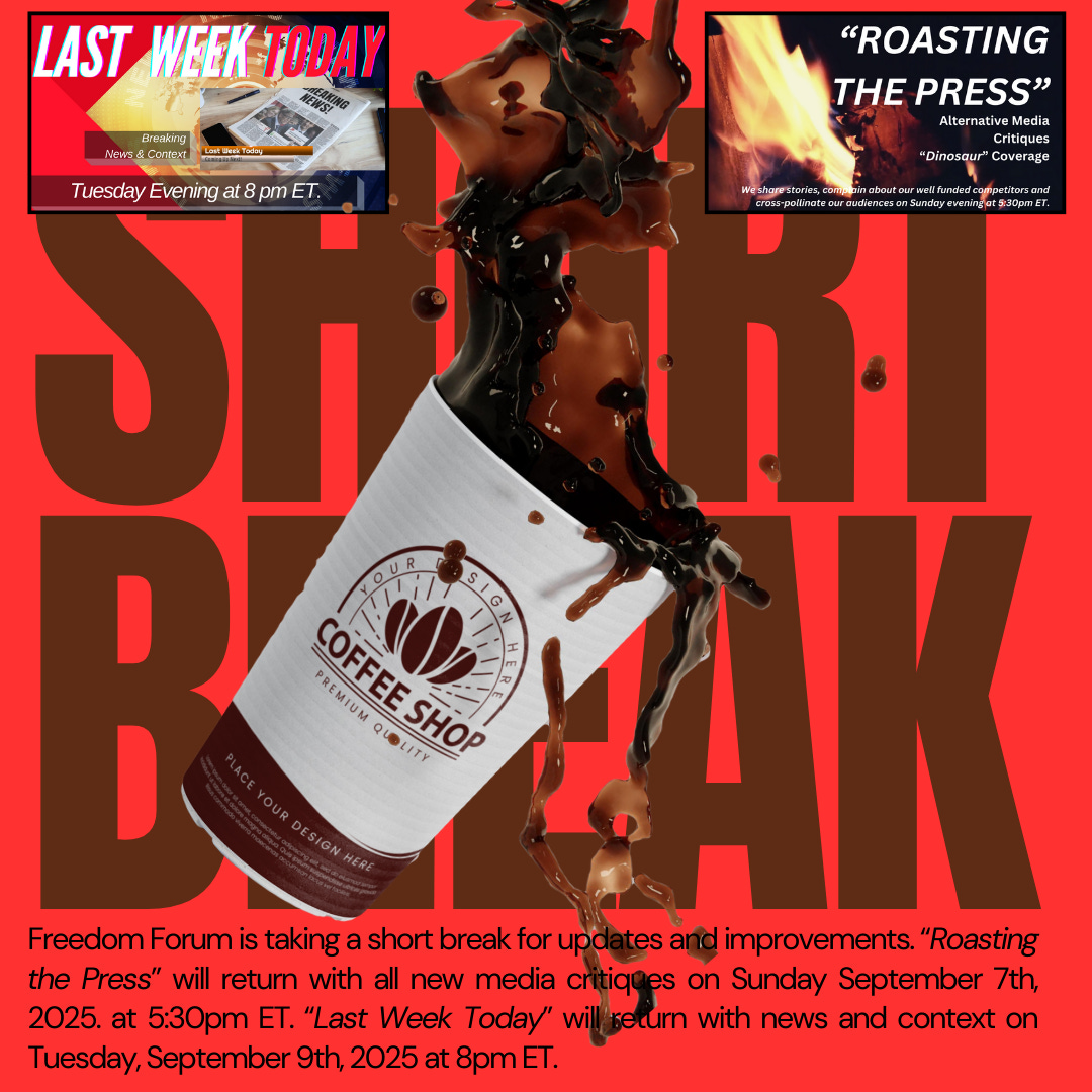 “Roasting the Press” will return with all new media critiques, beginning Sunday September 7th, 2025 at 5:30pm ET.