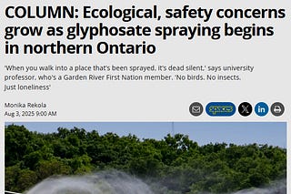 Canadian government's use glyphosate's to kill natural forests and replace them with inflammable, low diversity commercial tree crops.